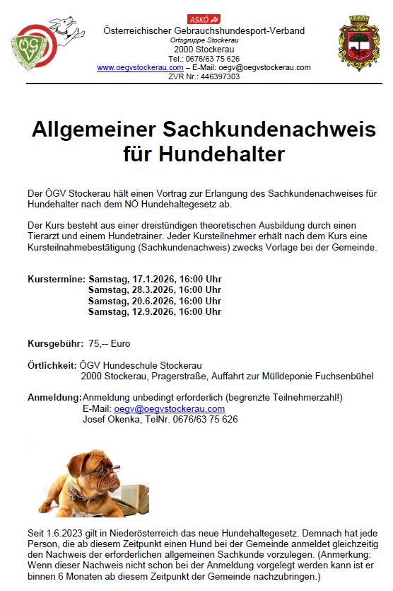 Bei uns sind alle Hunde willkommen ob Zwerge, große Rassen oder Mischlinge selbstverständlich auch sogenannte „Listenhunde“. Als Mitglied können Sie für den in NÖ erforderlichen erweiterten Sachkundenachweis trainieren und diesen auch günstiger erwerben. Natürlich ist der Erwerb des „erweiterten Sachkundenachweises“ für jede Person bei uns möglich. Anfragen bitte an den Obmann stellen.